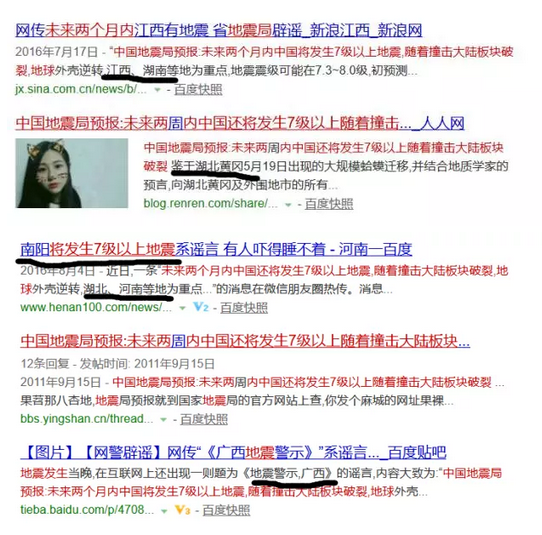 要评地震谣言界常用的手法,换地名必须在前三。替换掉老旧谣言中的地名、日期,就能够改头换面再次危害人间。以近期冒头的《专家预言》为例,上网一搜便会发现,造谣者有多热爱这个手法。